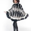 Rex Fur Cape with B&W Fox Fur Trim, batwing sleeves and leather belt. 2 Side pockets. 4 snap clip closures. Magnetic closure at neck. Made in Greece