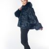 Swakara Sections Fur Jacket with Fox Fur Trim